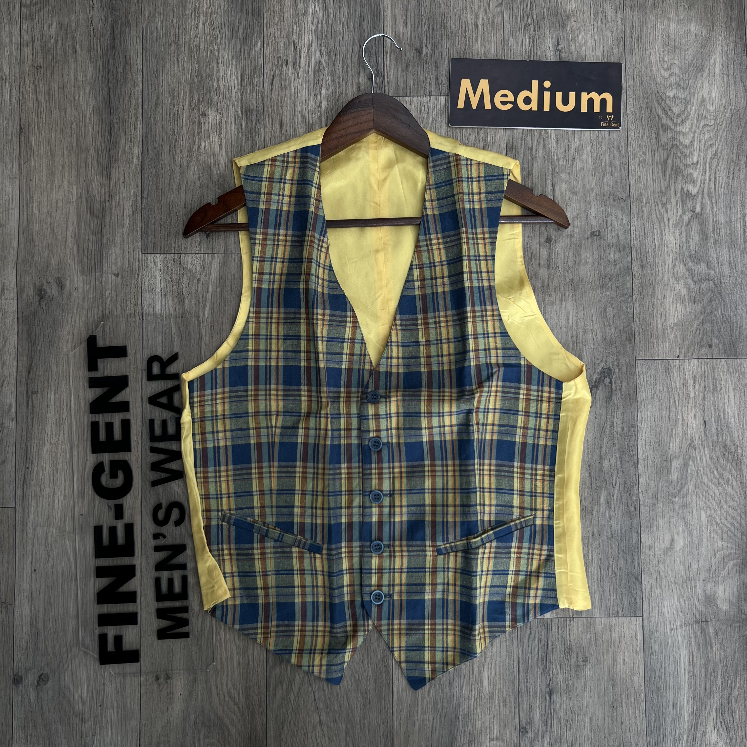 Yellow and blue checked halfcoat