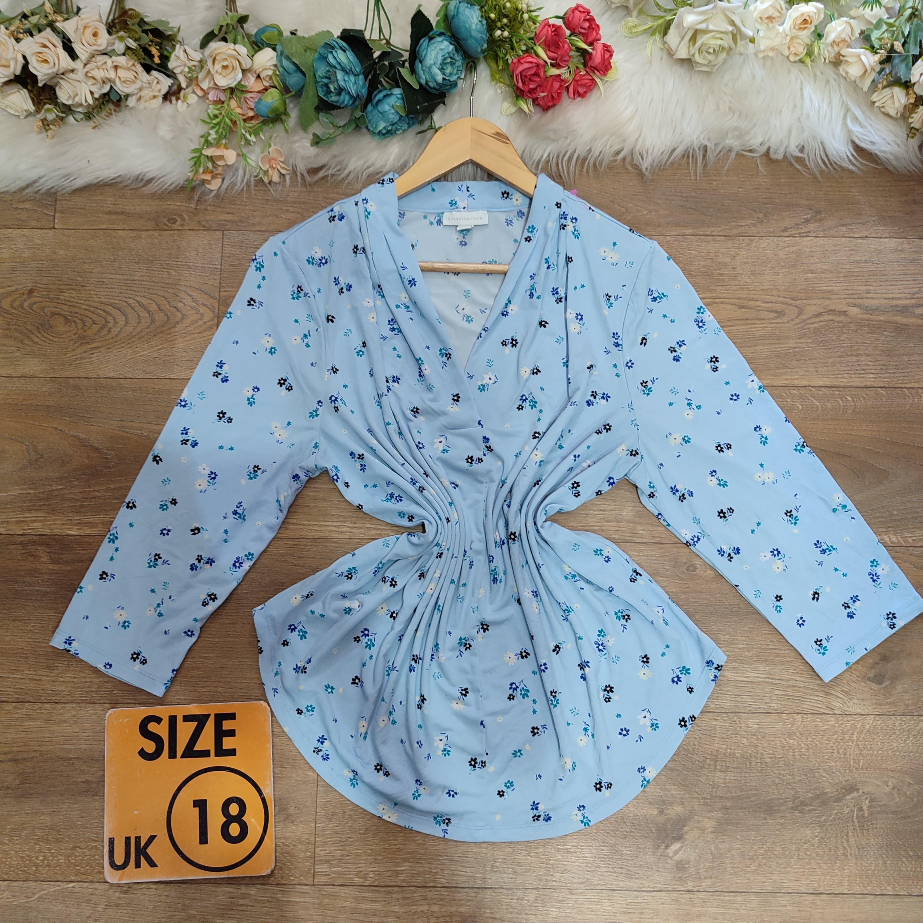 Blue detailed, size 18, carefully thrifted and well vetted,